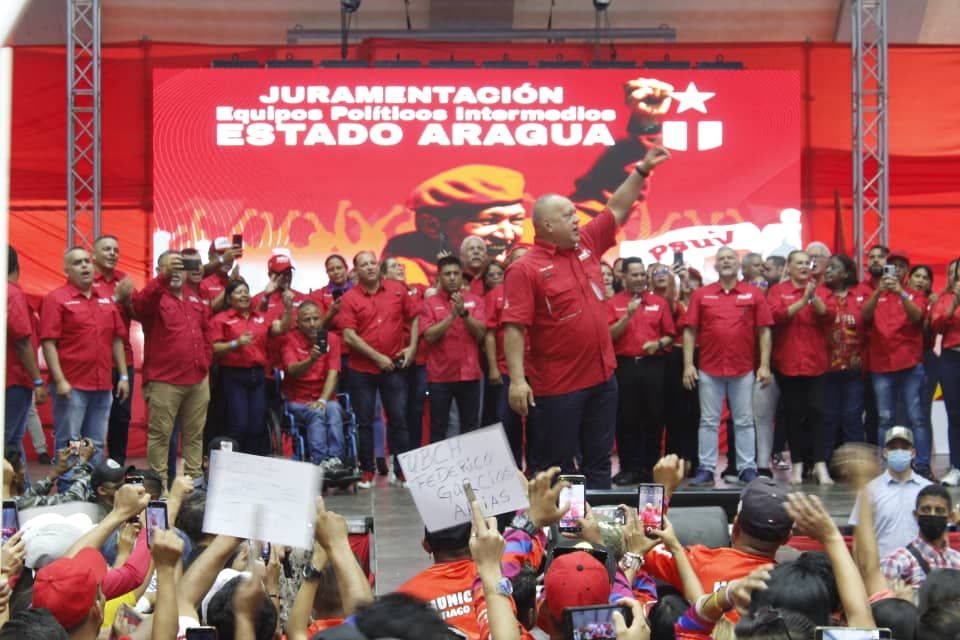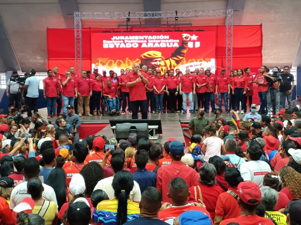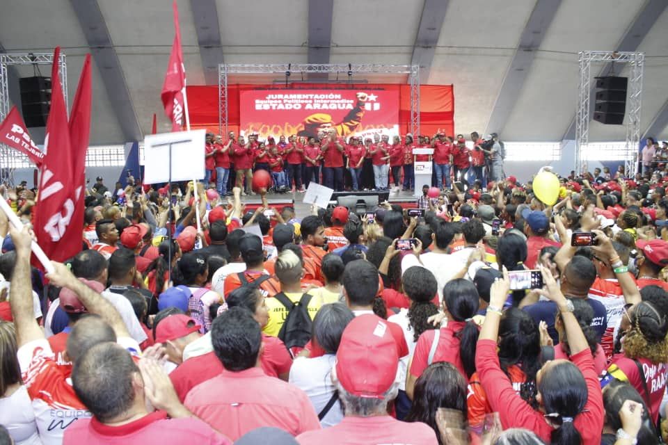 El primer vicepresidente del Partido Socialista Unido de Venezuela (PSUV), Diosdado Cabello, encabezó este jueves el acto de Juramentación del Equipo Político Estadal del PSUV, JPSUV y el Consejo Consultivo del estado Aragua.
