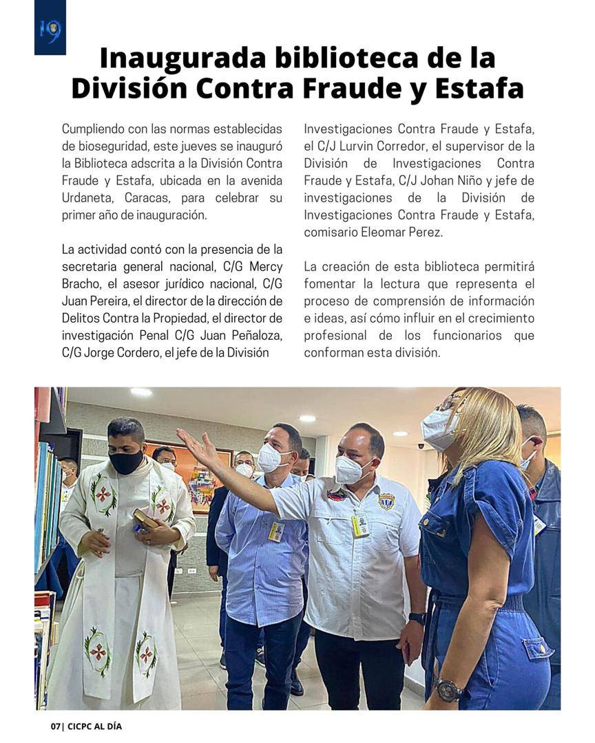 cual se destaca la inauguración de la biblioteca de la División Contra Fraude y Estafa.