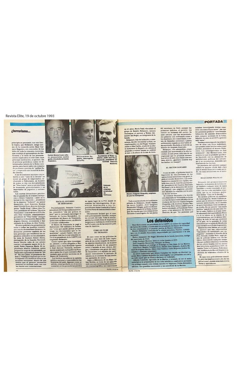 - El 14 de octubre de 1993, el gobierno declaró en grandes titulares: “TOTALMENTE ESCLARECIDO EL CASO”, siendo detenidos y trasladados al Retén de Catia los siguientes autores materiales e intelectuales de terrorismo financiero: