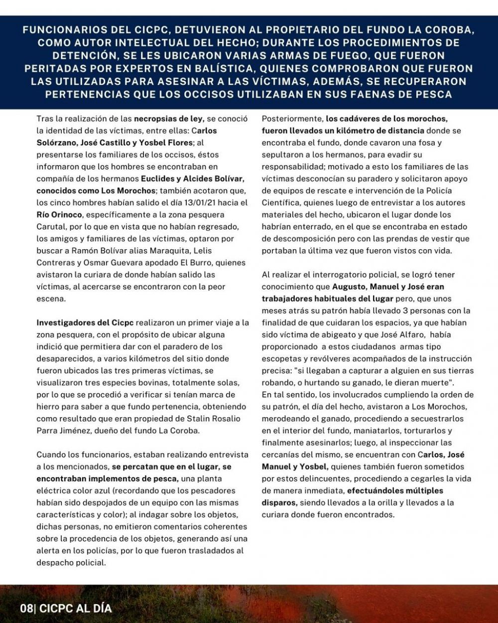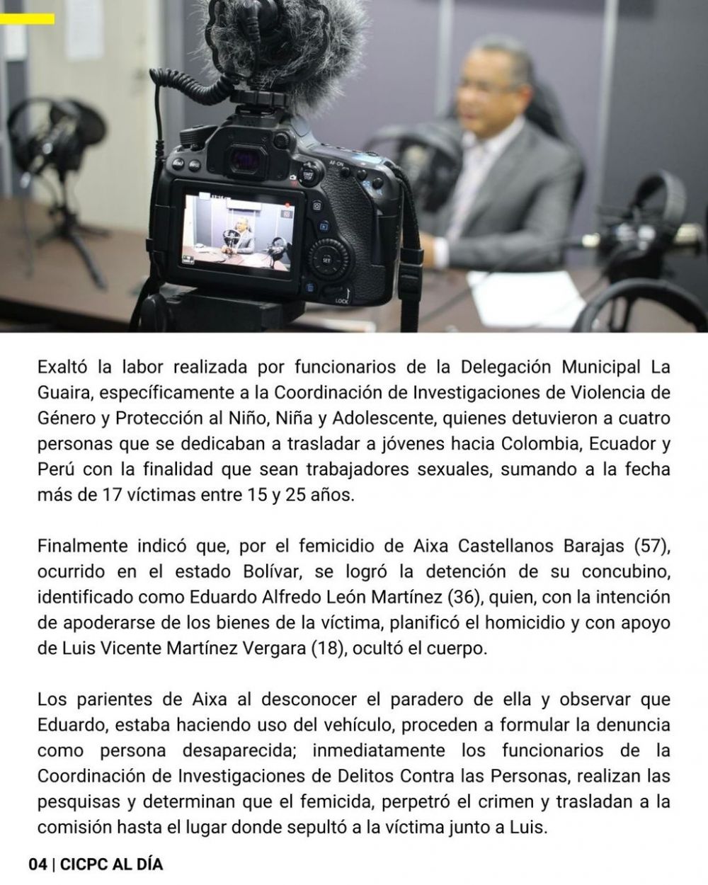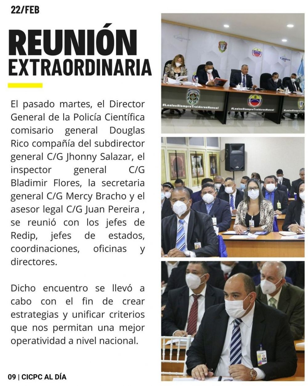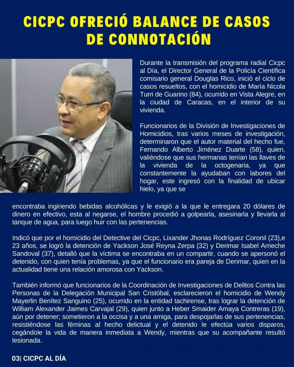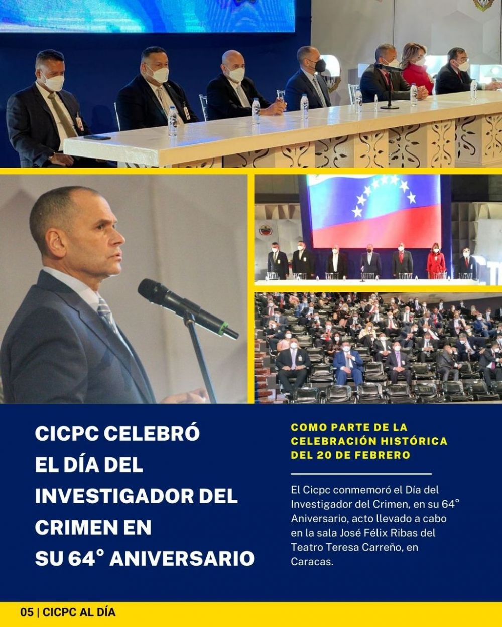 "Arribamos a la edición 152 del boletín CICPC Al Día, estamos desplegados por todo el territorio nacional, trabajando duro en el operativo Carnavales Seguros, todos los cuerpos de seguridad y de prevención del Estado, haciendo una sola fuerza que consolide el derecho al disfrute de los venezolanos en estos días de asueto. Respetemos todas las normas de bioseguridad, seamos disciplinados en relación a las ordenanzas y leyes que marcan las pautas para la buena convivencia ciudadana", expresó el comisario general Douglas Rico, director del CICPC sobre la nueva edición.