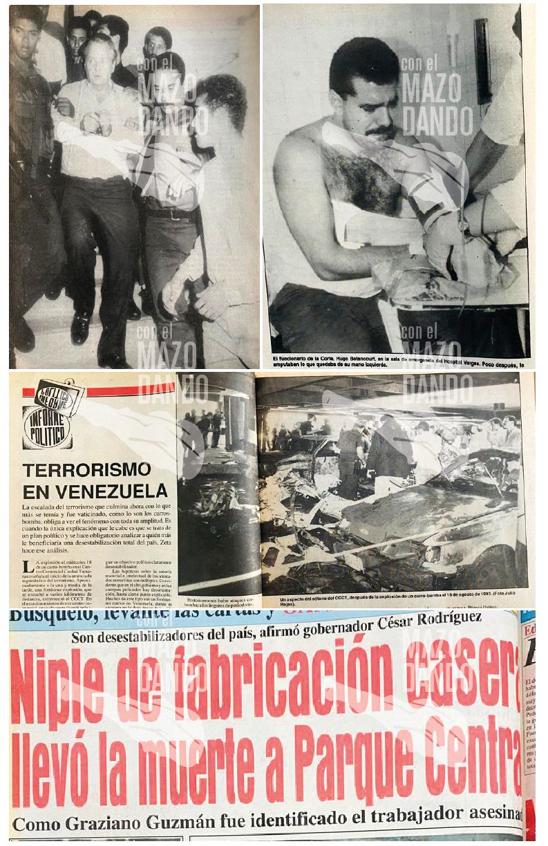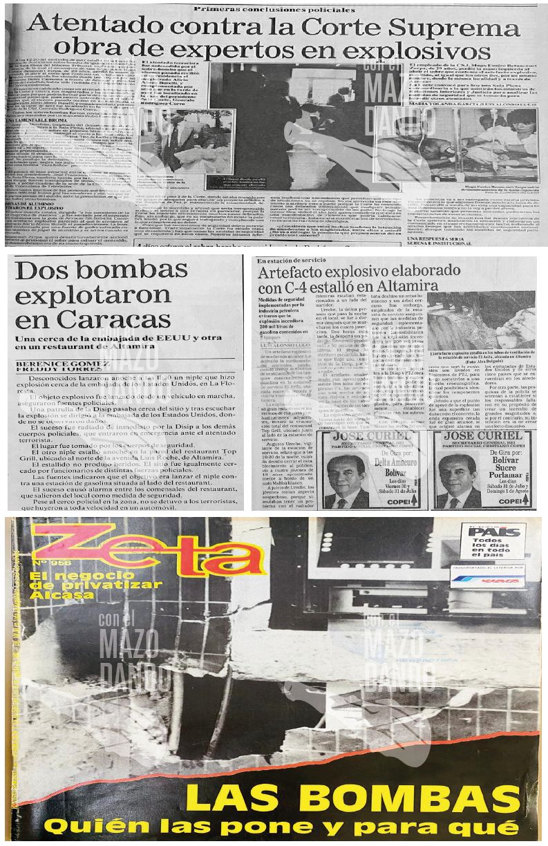 - Entre julio y noviembre de 1993, detonaron en Caracas varios artefactos explosivos con el fin de generar pánico en la ciudad e intimidar a los magistrados del Tribunal Supremo de Justicia (TSJ) y cuerpos policiales encargados de investigar al expresidente Jaime Lusinchi, por el caso de la compra fraudulenta de 100 Jeeps.