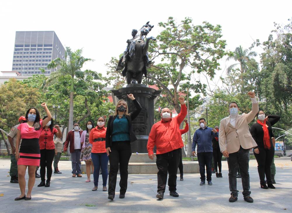 Posteriormente acudieron a la plaza Bolívar donde reafirmaron su compromiso con la lucha por la independencia y soberanía, frente a la estatua ecuestre el Libertador.