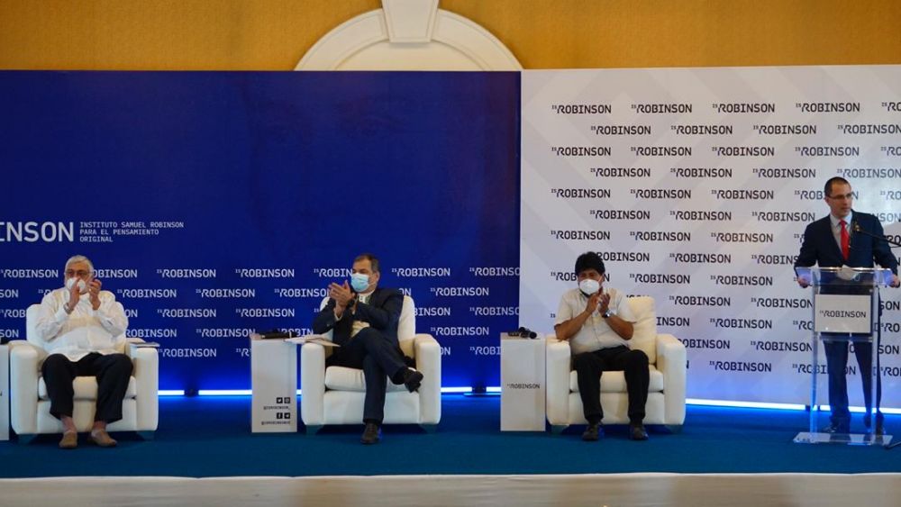 Con la participación de los líderes suramericanos Evo Morales, Rafael Correa y Fernando Lugo, expresidentes de Bolivia, Ecuador y Paraguay respectivamente, este lunes el Instituto Samuel Robinson para el Pensamiento Original organizó la conferencia “Diálogo de civilizaciones”, moderada por el canciller de la República Bolivariana de Venezuela, Jorge Arreaza.