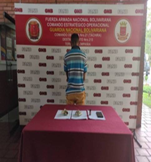 De acuerdo con información de la GNB, el ciudadano aprehendido responde al nombre de Luis Alfredo, titular de la cédula de identidad V-25.133.733, quien se trasladaba en una unidad de transporte público, desde San Antonio, estado Táchira, con destino a Valle de La Pascua, estado Guárico.