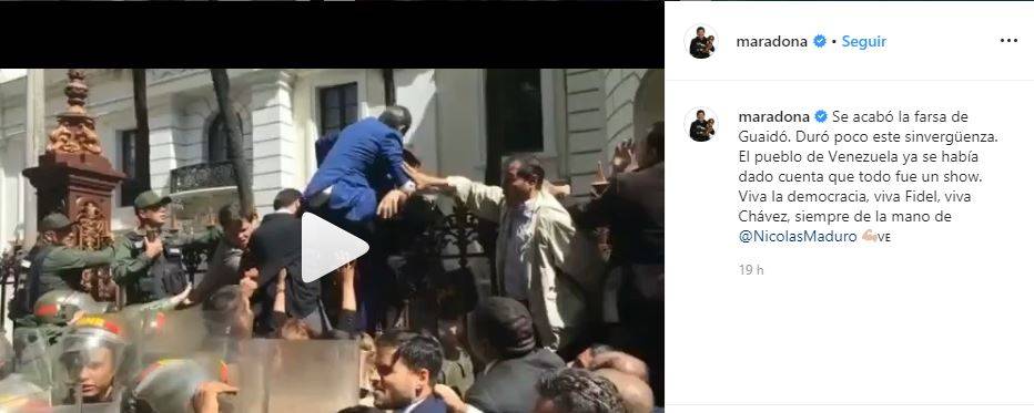 mano de del presidente Nicolás Maduro”, escribió Maradona a través de su cuenta en la red social Instagram.