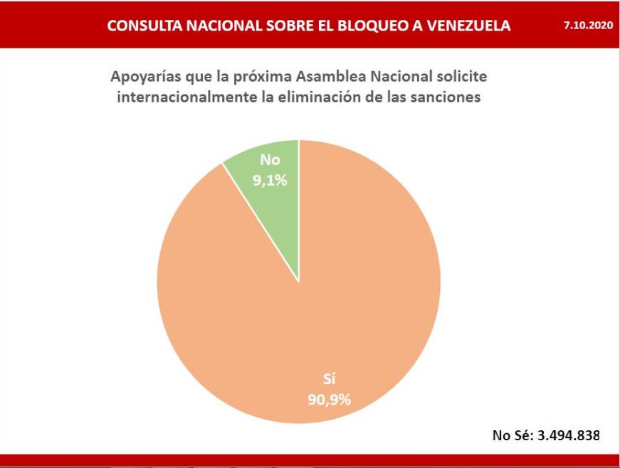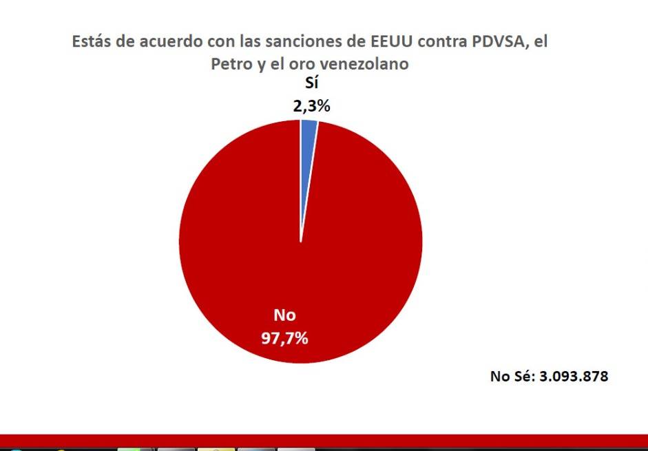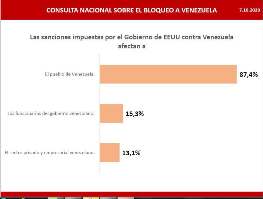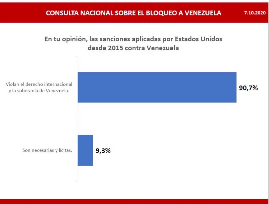 La gran mayoría del país rechaza el mecanismo genocida y criminal aplicado contra Venezuela por parte de los EEUU