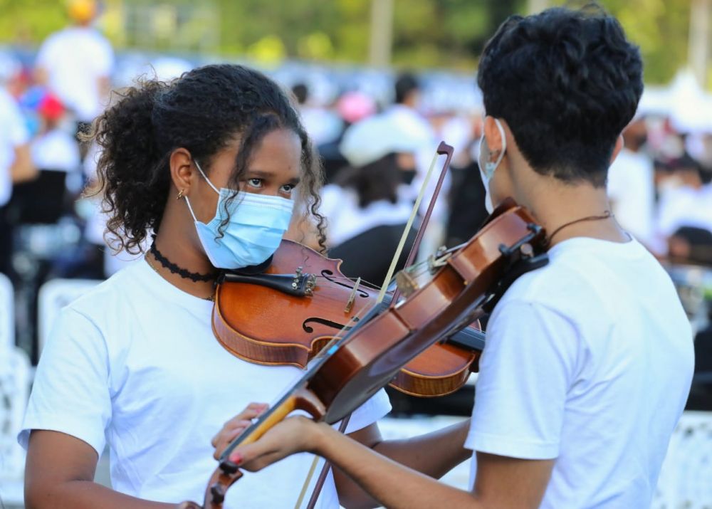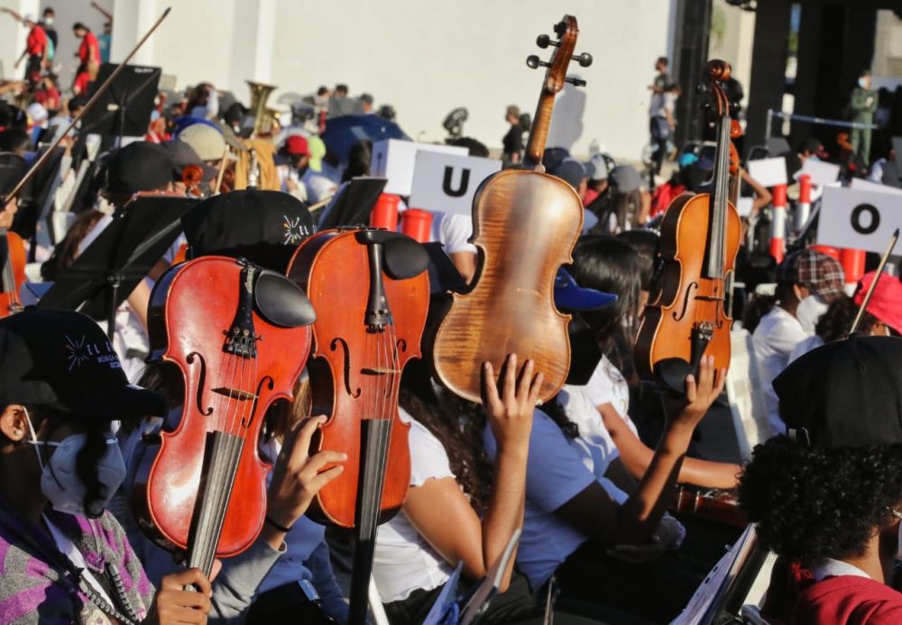 Jóvenes músicos venezolanos ensayaron antes de buscar récord Guinness (+fotos)