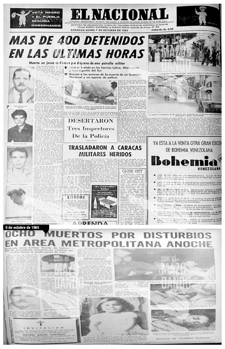 (El Nacional, Clarín y Últimas Noticias, 7 y 8 de octubre 1963)