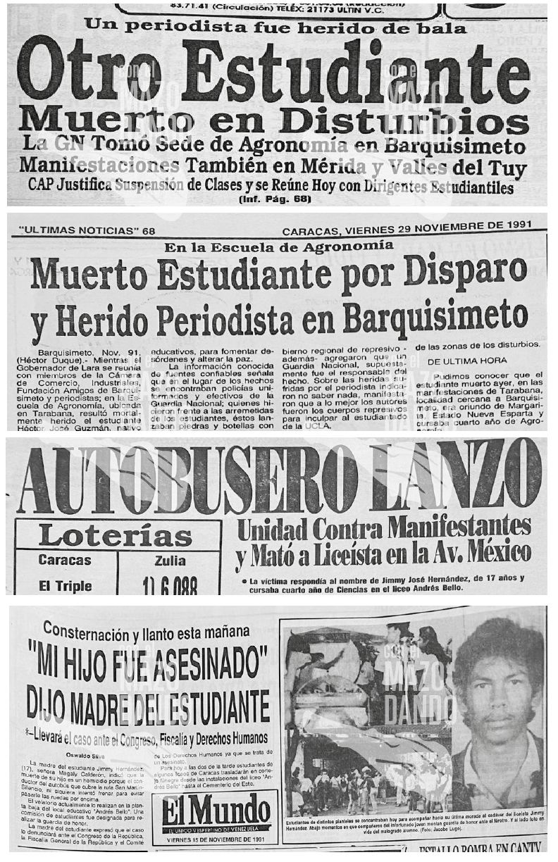 - Ese mismo mes, durante la semana del Día del Estudiante, fueron asesinados ocho liceístas en varias ciudades del país, entre ellos: