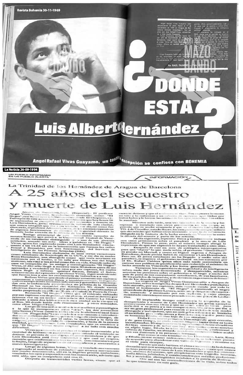 - El 26 de septiembre de 1969, fue detenido y desaparecido Luis Alberto Hernández, estudiante de primer año en la Escuela de Sociología y Antropología de la Universidad Central de Venezuela (UCV). Hasta hoy no se sabe su paradero. Era dirigente del Partido Revolucionario de Integración Nacionalista (PRIN).