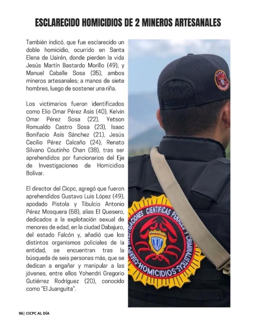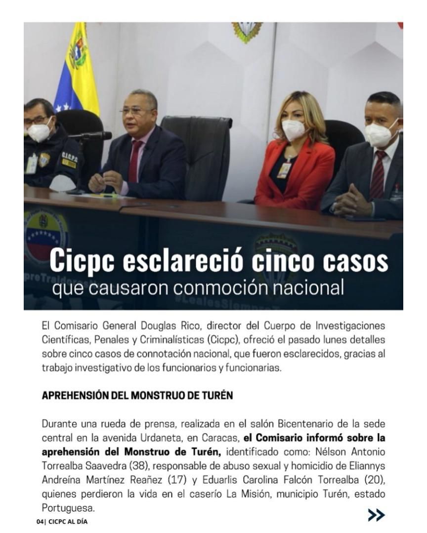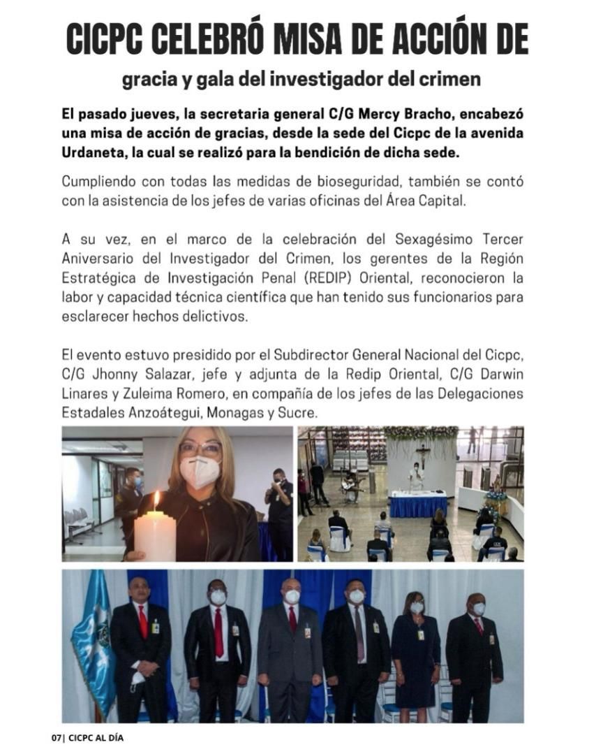 La directiva del Cuerpo de Investigaciones Científicas , Penales y Criminalísticas (Cicpc) este domingo invita a leer la edición número 105 de su revista "Cicpc al Día", ya en circulación.