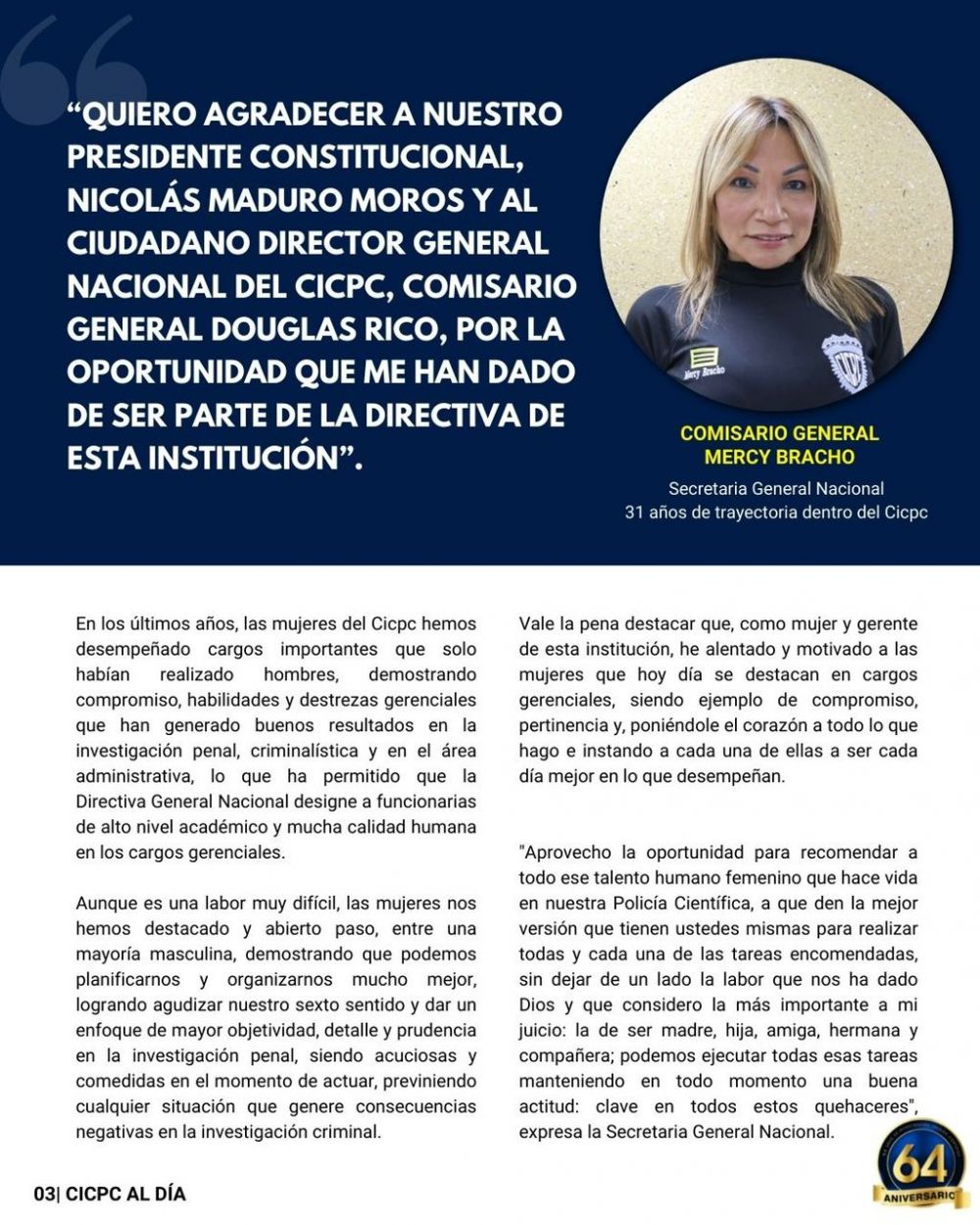 Esta nueva edición invita a conocer a las mujeres que integran este cuerpo de seguridad quienes asumen retos importantes dentro del mismo.