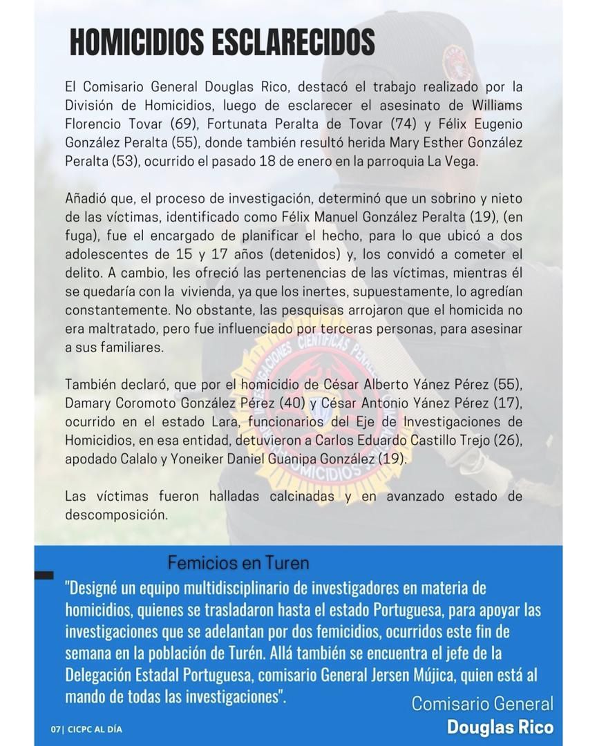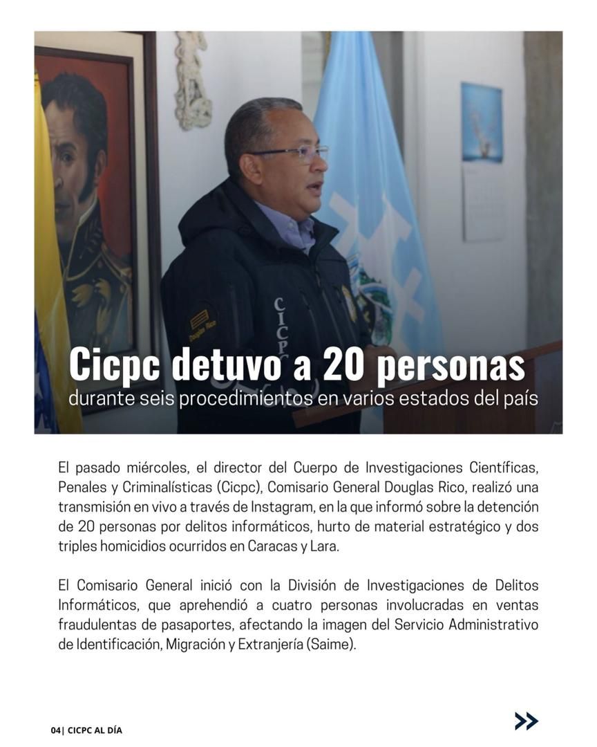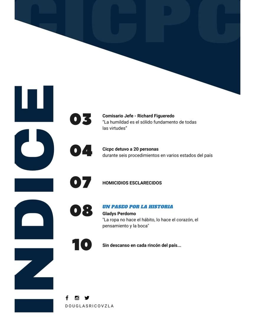 La directiva del Cuerpo de Investigaciones Cientpificas , Penales y Criminalísticas  (Cicpc) invita a leer  la edición número 104 de su revista "Cicpc al Día", ya en circulación. "Se trata de  parte del trabajo que nuestra institución realiza en pro de la seguridad ciudadana y la paz de la patria", destaca su director, comisario general Douglas Rico.