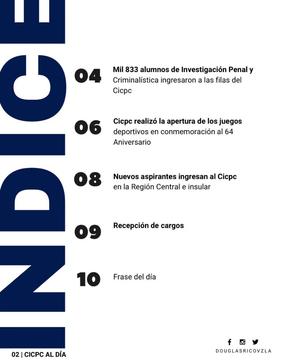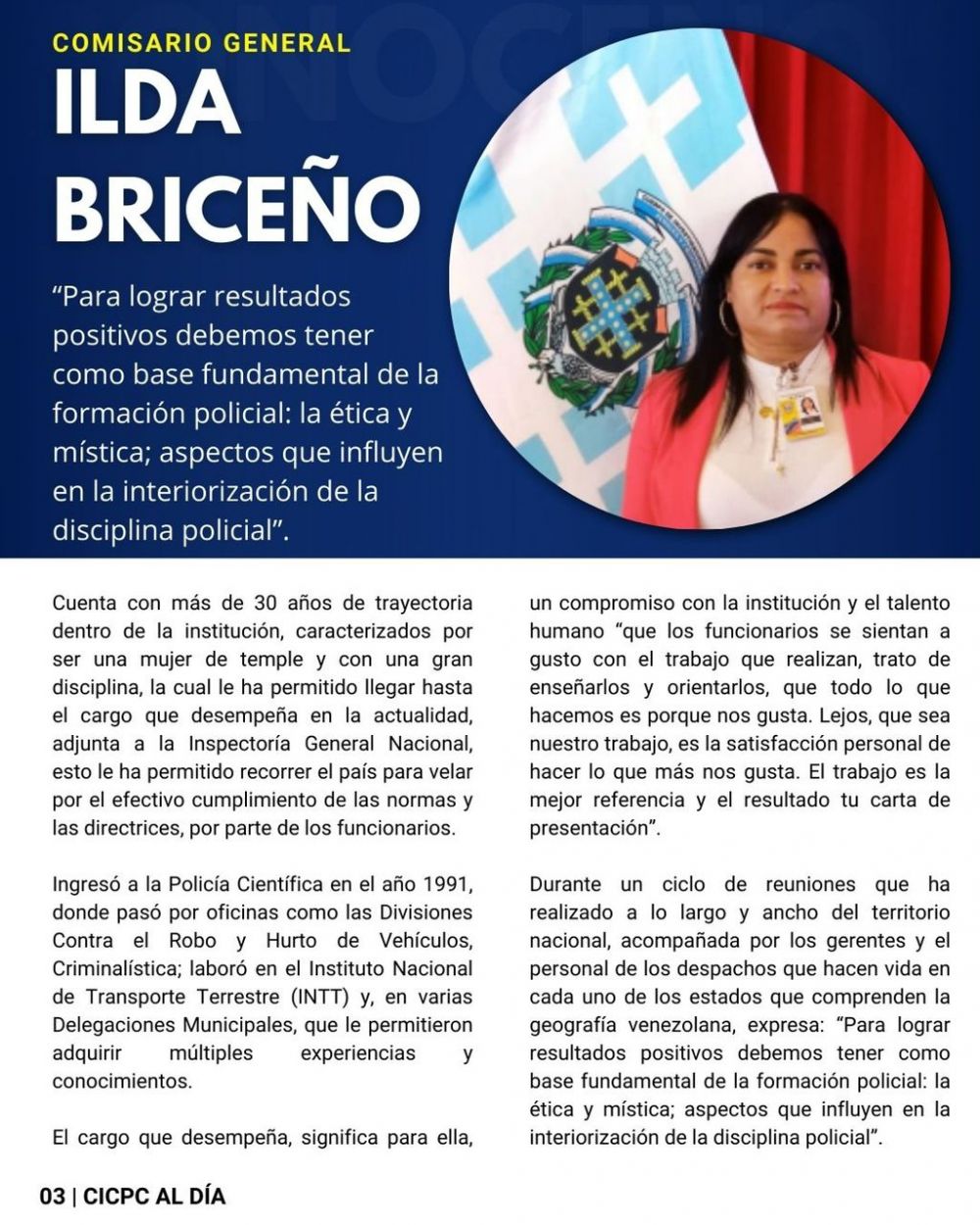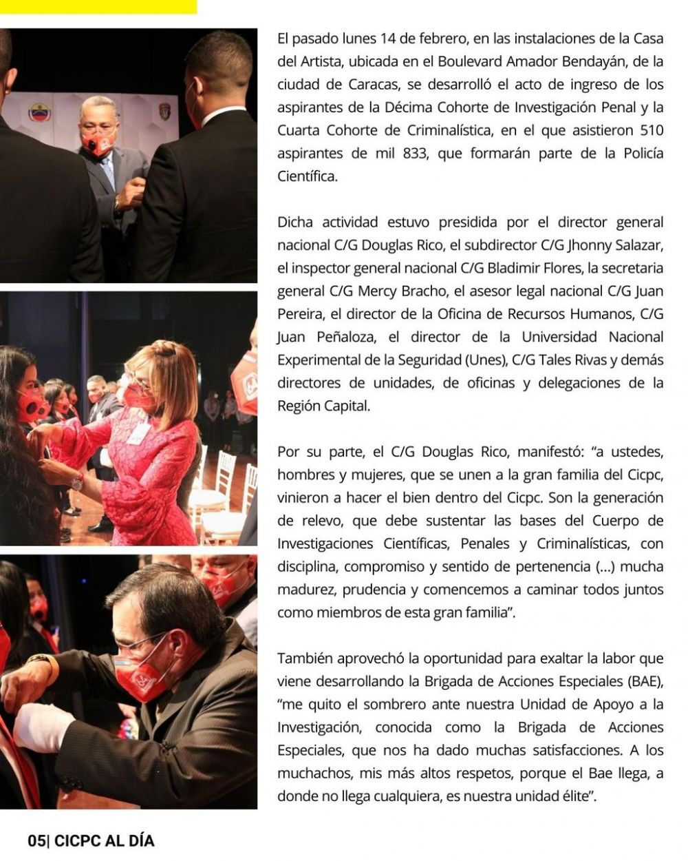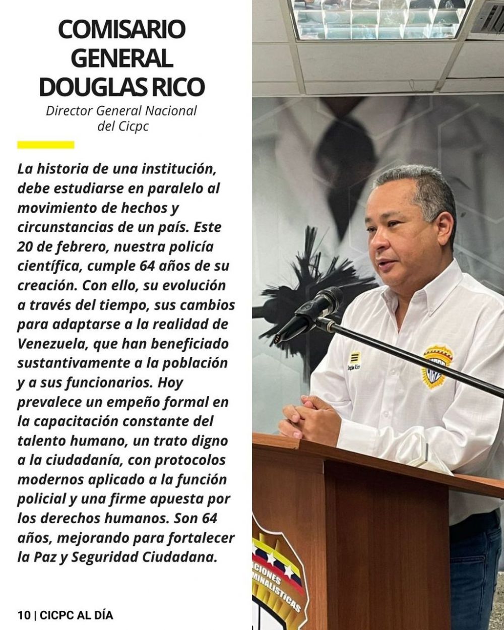 "Presentamos la edición número 151 del boletín CICPC Al Día y aprovechamos para celebrar el Día del Investigador del Crimen, además, festejamos los 64 años de creación de nuestra institución" expresó el director de la institución, comisario general Douglas Rico. Añadió que "seguimos trabajando en perfecta coordinación con los diferentes cuerpos de seguridad del Estado, vamos juntos, con fortaleza, apostando por La Paz y Seguridad Ciudadana".