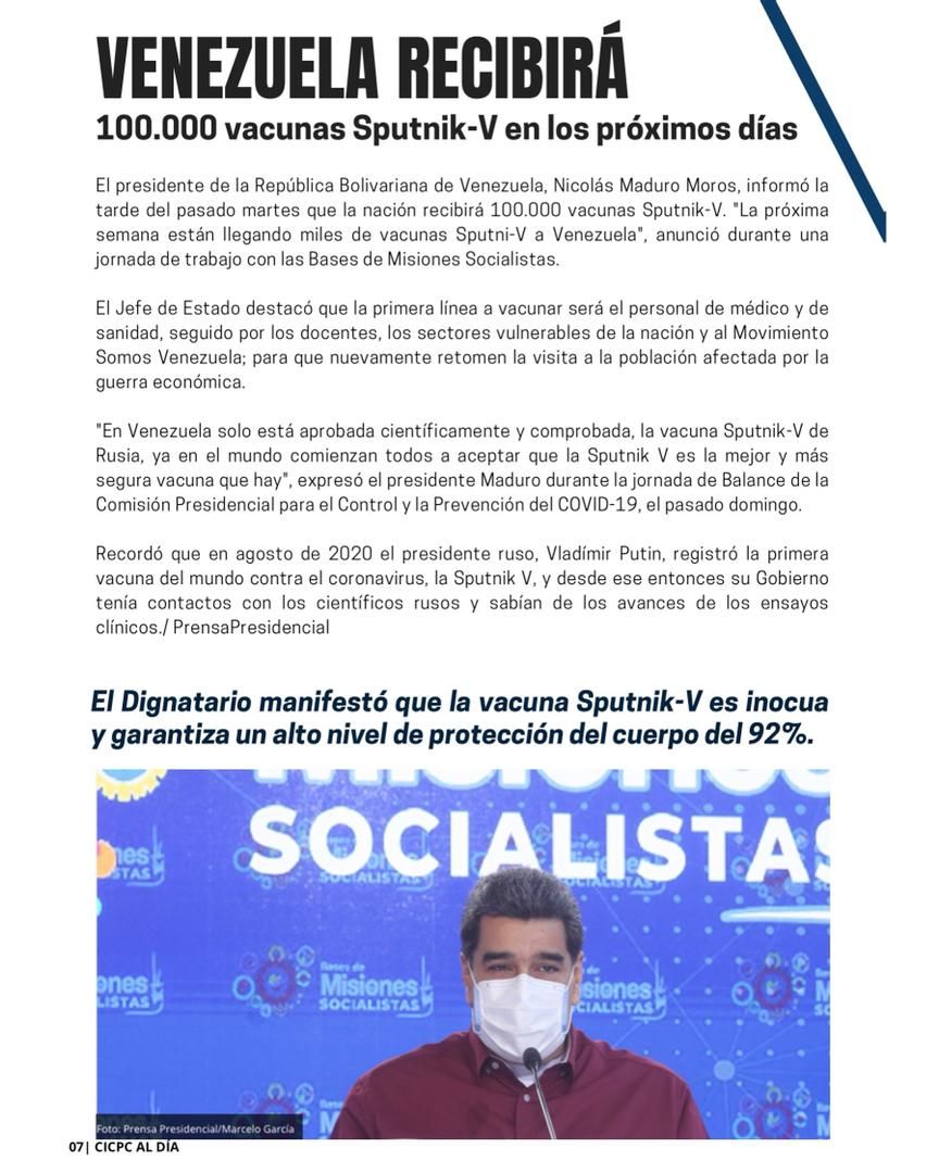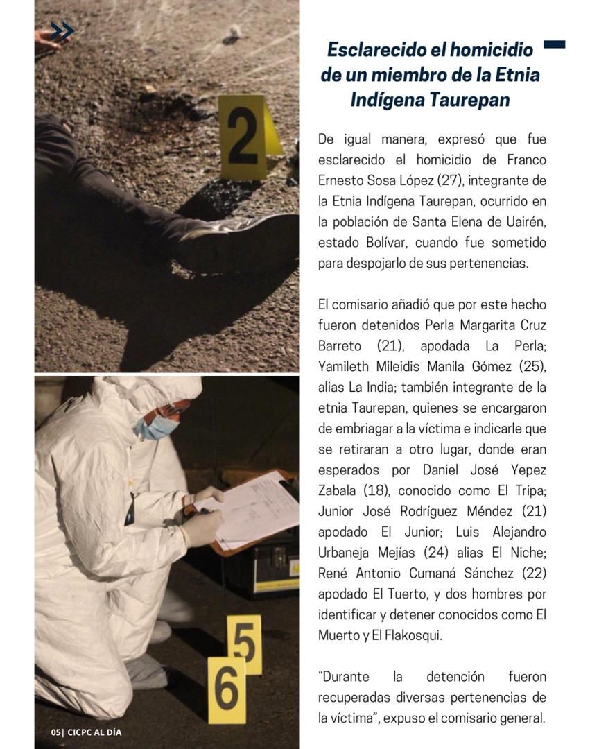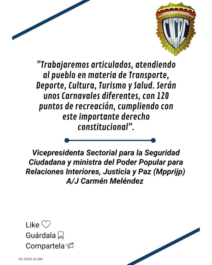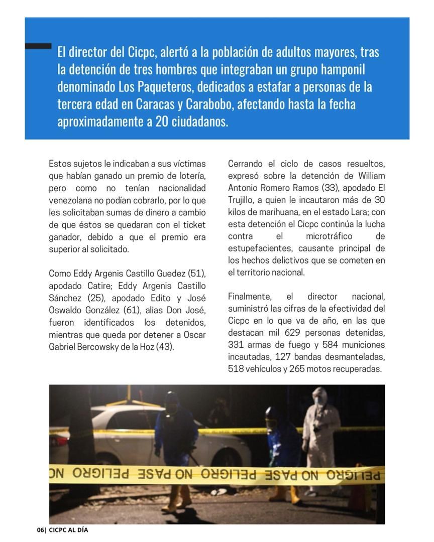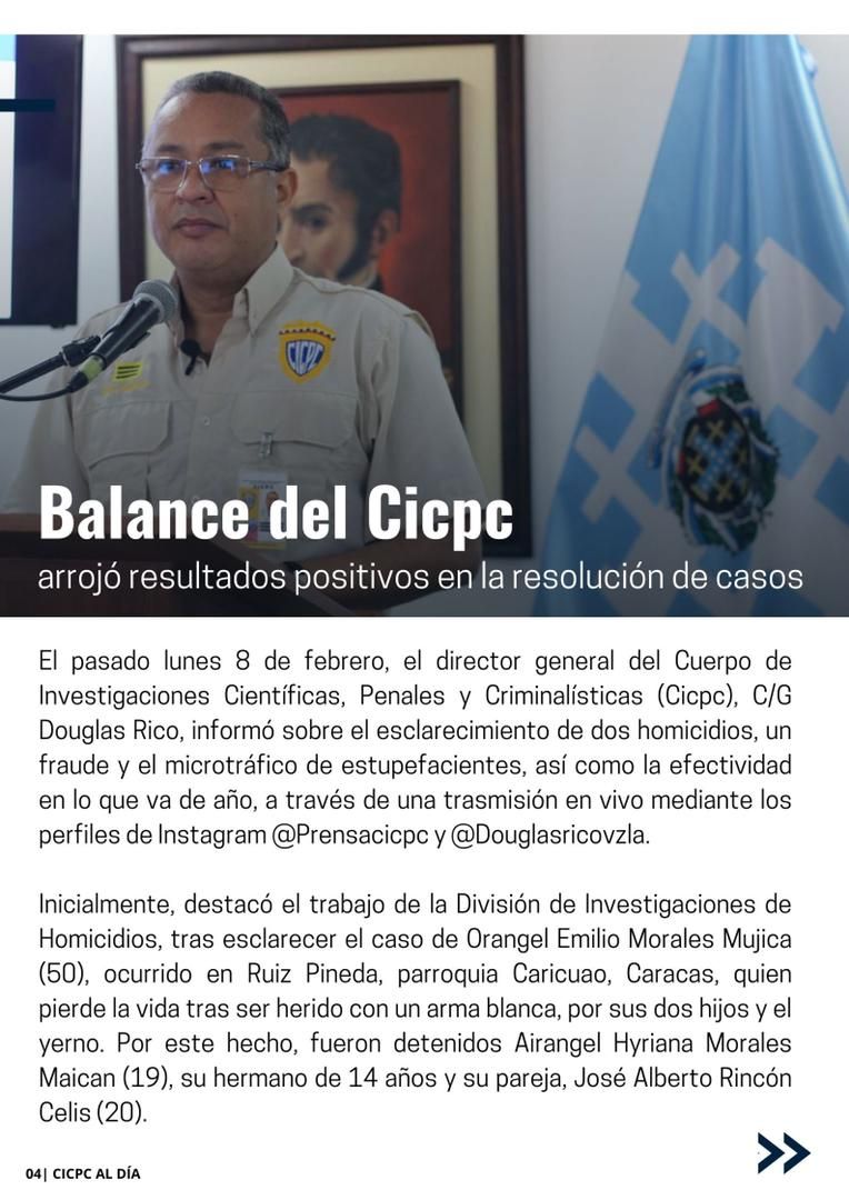 Se trata de "Cicpc Al Día, la cual celebramos ampliamente, por ser elaborada en medio de un despliegue de todos los cuerpos de seguridad, coordinados y sincronizados en un fin fundamental que es mantener la paz y seguridad en todo el territorio nacional", dijo Rico.