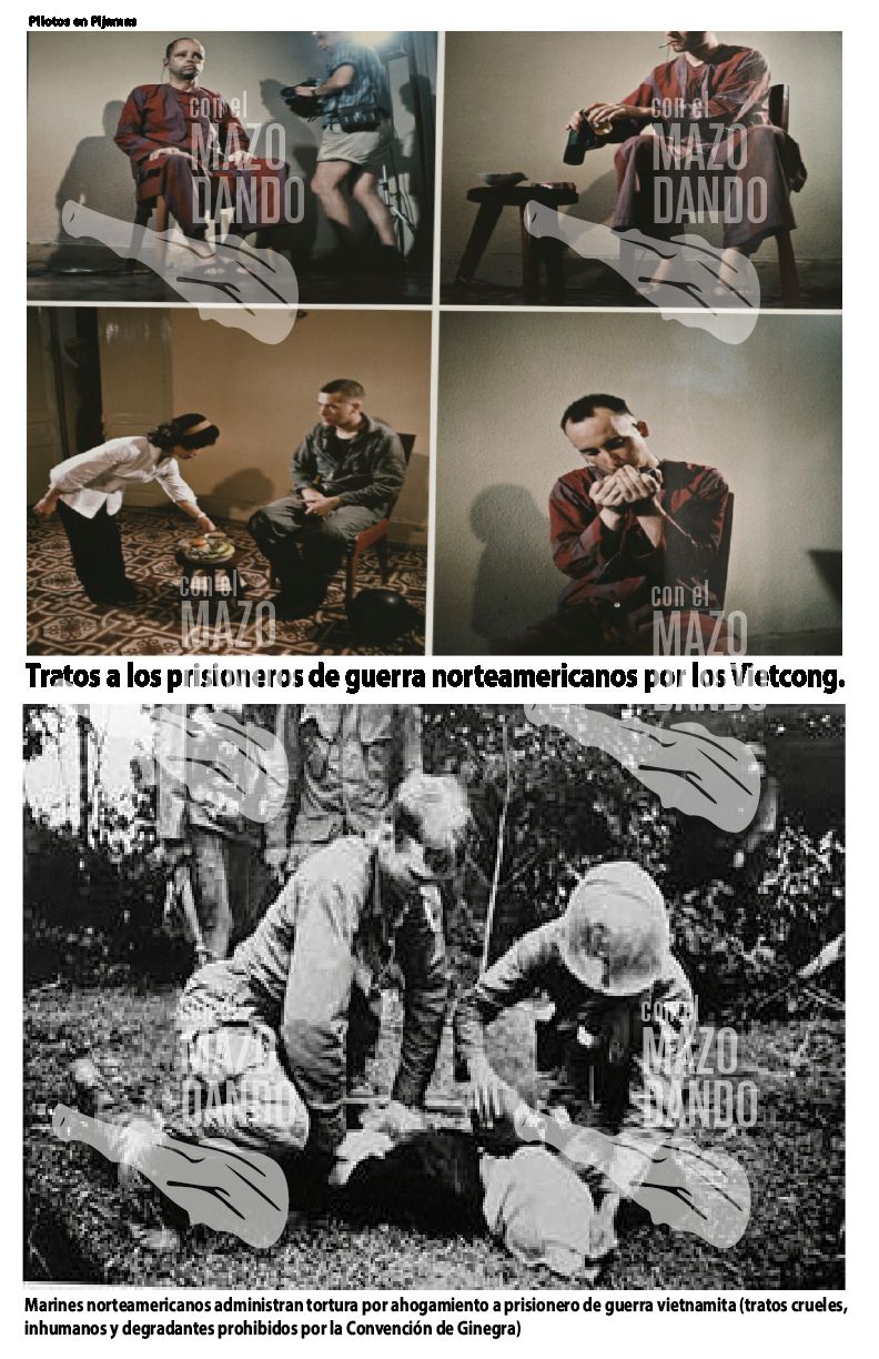 - Los llamados POW, Prisoners of War (prisioneros de guerra), eran todos trasladados a la cárcel conocida como “Hanoi Hilton” en Vietnam del Norte, donde, a diferencia del trato que los marines daban a los vietcong, eran expuestos a ruedas de prensa con invitados internacionales para dar fe de vida de los mismos.