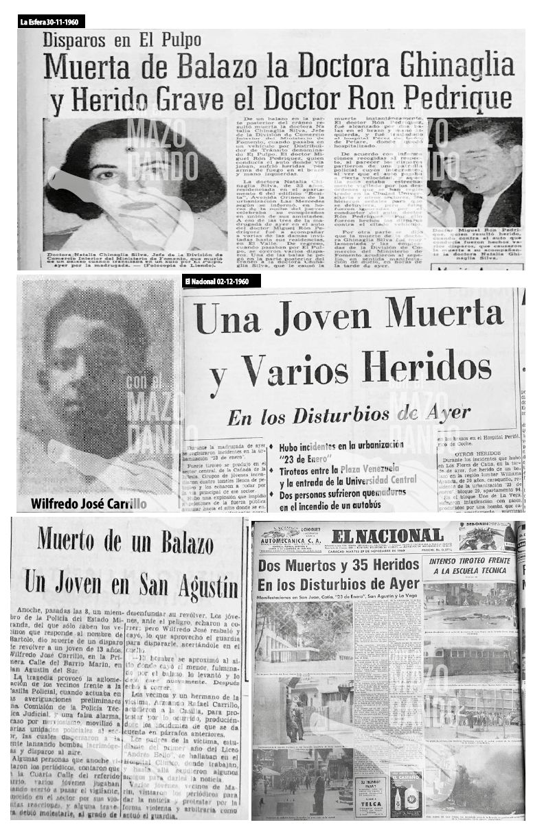 Guillermina Echenique Padilla, de 16 años, cayó fulminada de un balazo en el abdomen propinado por un agente de la Policía del Distrito Federal. El hecho ocurrió en Los Flores de Catia.
