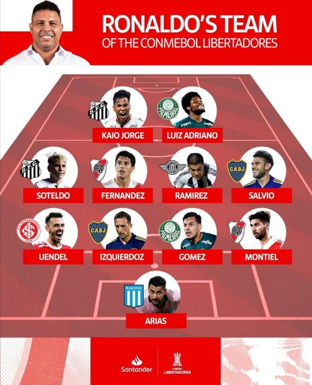 El "Fenómeno" hizo su selección en la previa de la final del certamen que este sábado disputarán Palmeiras y Santos en el estadio Maracaná.
