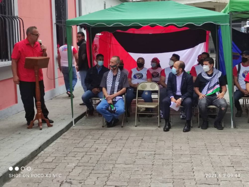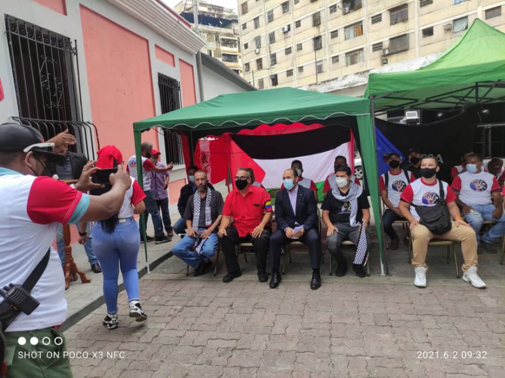 Este miércoles, 2 de junio, la Fundación de Luchadores Socialistas de Santa Ana, las Cuadrillas de Paz (Cupaz), movimientos sociales y colectivos del sector San Martín, en la parroquia San Juan de Caracas, realizaron una concentración para luego dar marcha a una caminata en solidaridad con el Pueblo de Palestina, el cual es víctima de un bombardeo criminal por el Estado terrorista de Israel.