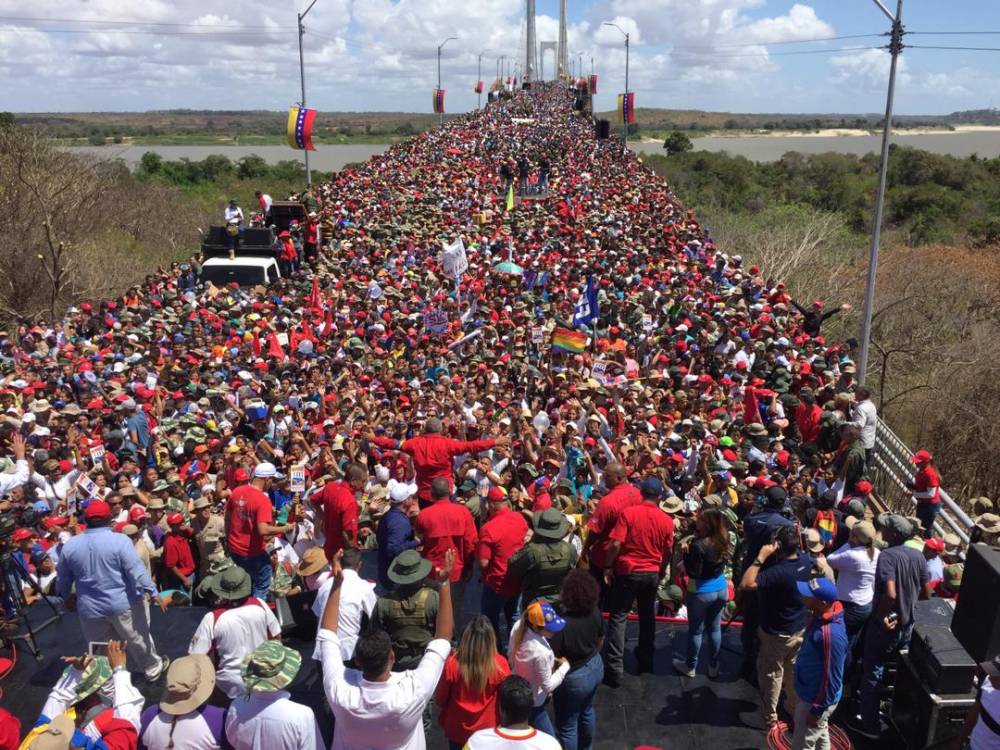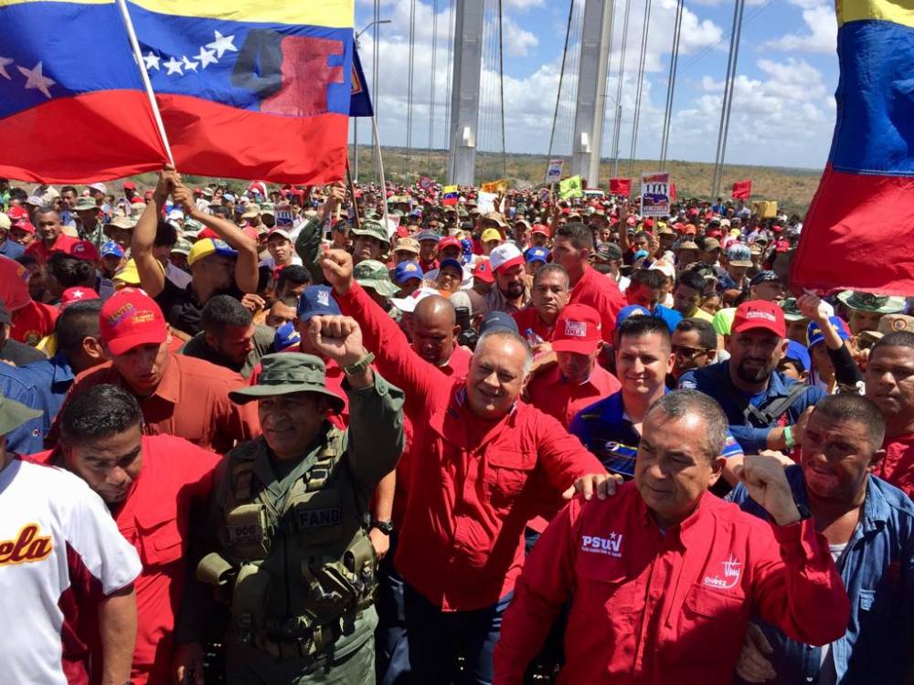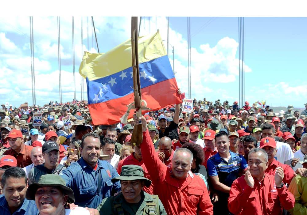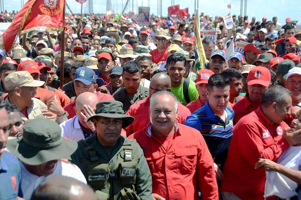 Este miércoles 20 de febrero el primer Vicepresidente del Partido Socialista Unido de Venezuela, Diosdado Cabello, acompañó al pueblo de Bolívar en una gran marcha multitudinaria por la paz, desde el Puente de Angostura, donde nació la Patria Grande.
