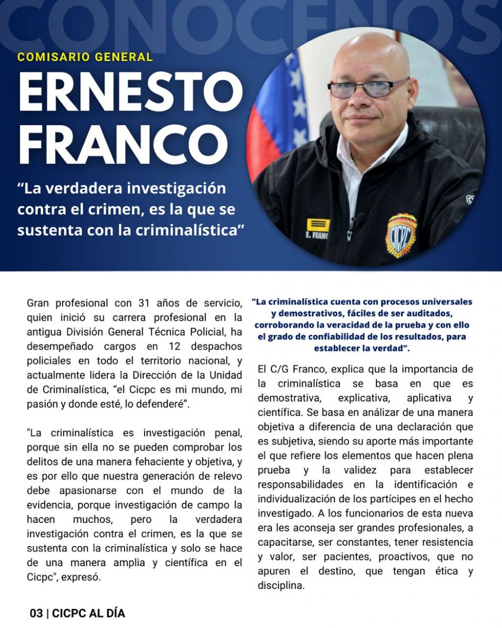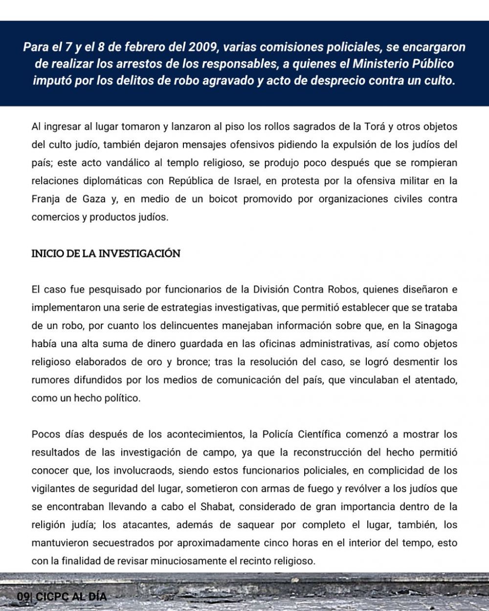 El Cuerpo de Investigaciones Científicas, Penales y Criminalísticas (CICPC) difundió este domingo un nueva entrega de su boletín informativo semanal, invitando al pueblo venezolano a compartir la lectura con amigos y familiares.