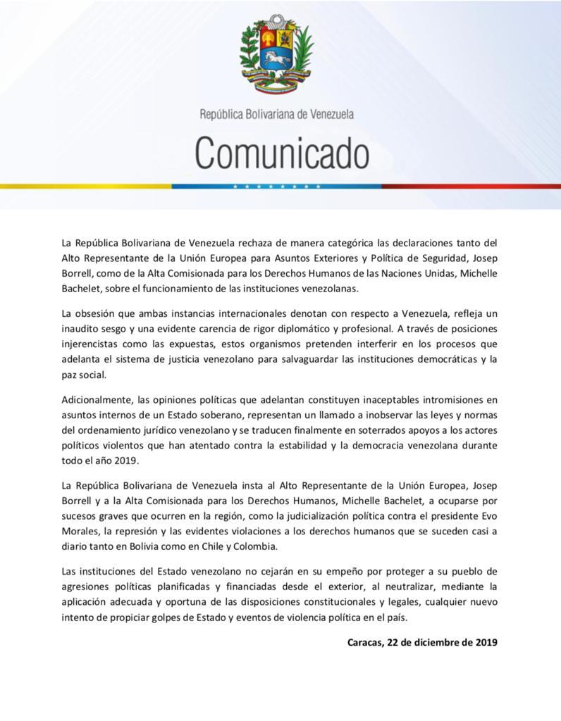 Venezuela denuncia que el Alto Representante de la UE y la Alta Comisionada para los DDHH de las ONU