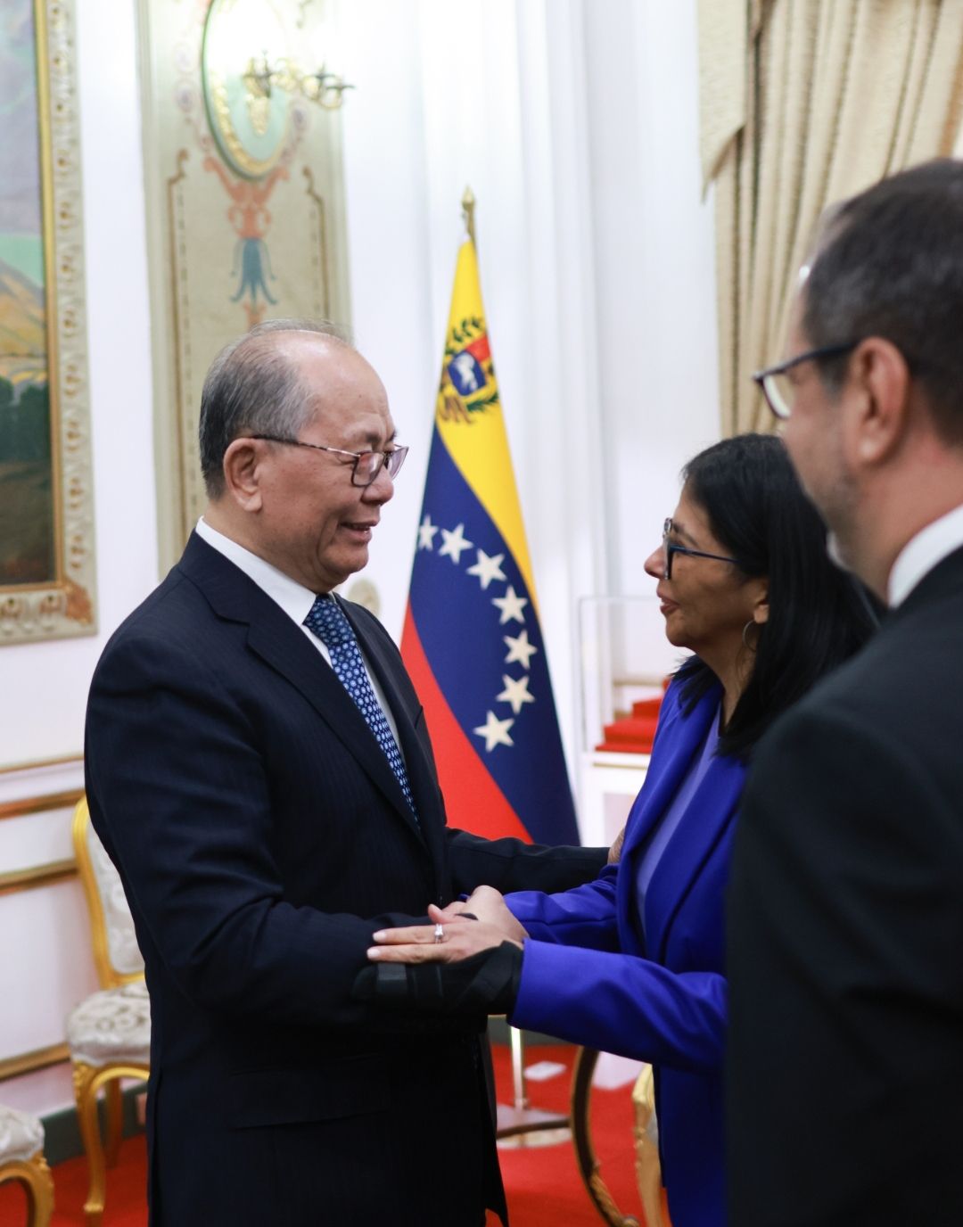 “Me alegra mucho saludarlos. Gracias por la felicidad. Y agradecer al presidente Xi Jinping siempre su hermandad. Como hermano mayor. Y su mensaje tan contundente de líder para el mundo”, expresó el mandatario venezolano, acompañado por la vicepresidenta Ejecutiva del país, Delcy Rodríguez, y el ministro del Poder Popular para Relaciones Exteriores, Yván Gil, tras recibir a las autoridades.