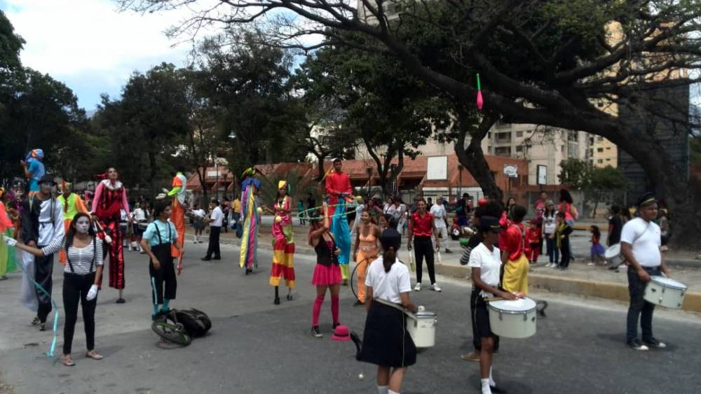 En el despliegue cultural las reinas del carnaval se pasearon por el espacio monumental escoltadas por el simpático Rey Momo, mientras los presentes se unían a la comparsa con pitos y papelillos, en donde las distintas alegorías estuvieron acompañadas por un elenco multitudinario, que durante meses prepararon divertidas coreografías para deleitar a los caraqueños.